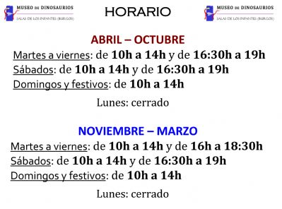 NUEVO HORARIO DEL MUSEO DE DINOSAURIOS DE SALAS DE LOS INFANTES (BURGOS)